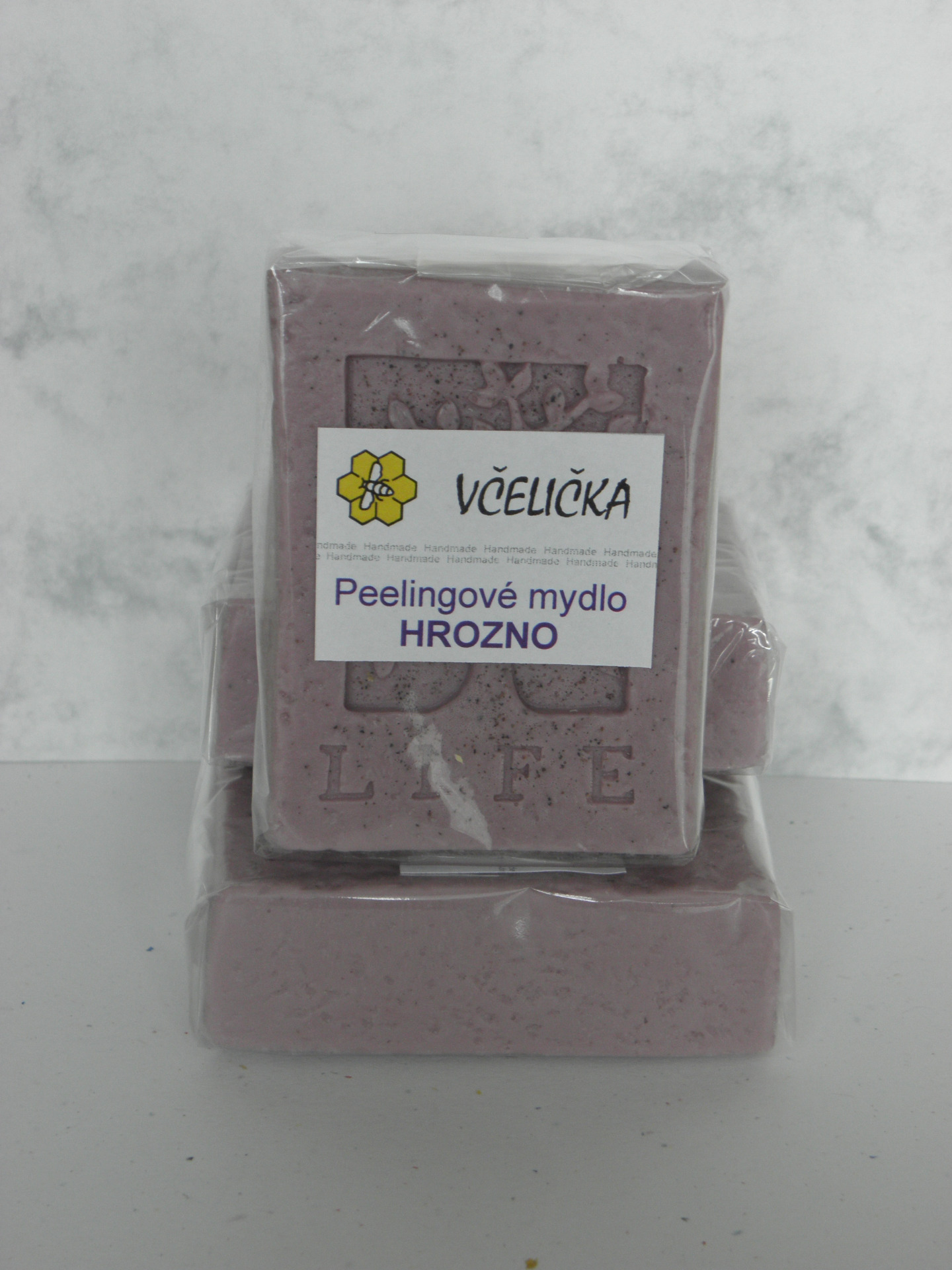 Ručne vyrábané peelingové mydlo s vôňou tmavého hrozna je vhodné na pokožku